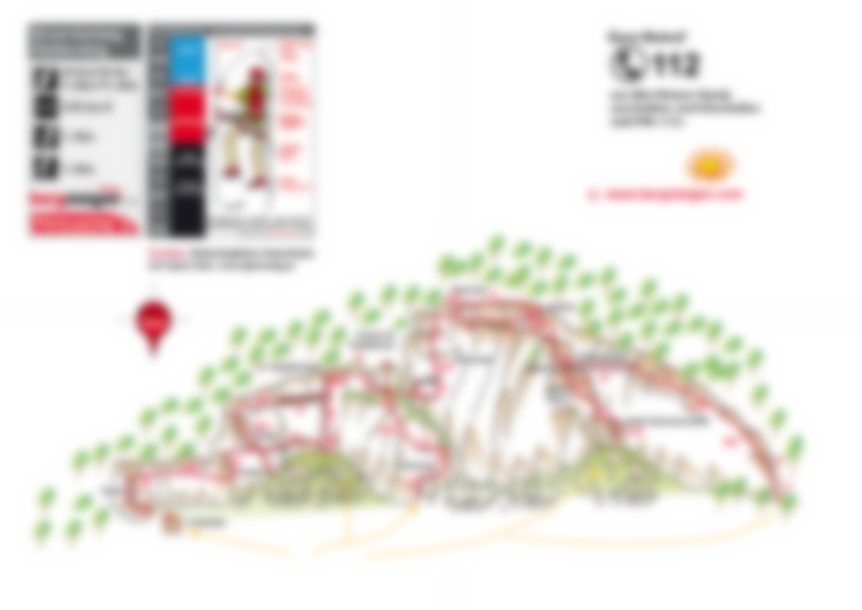 The via ferrata has only one summit ascent, slightly to the left of the summit cross. Follow the well-trodden footpath to the left counter-clockwise along the edge of the quarry to the entrance. Then take the same access route back to the parking lot.
