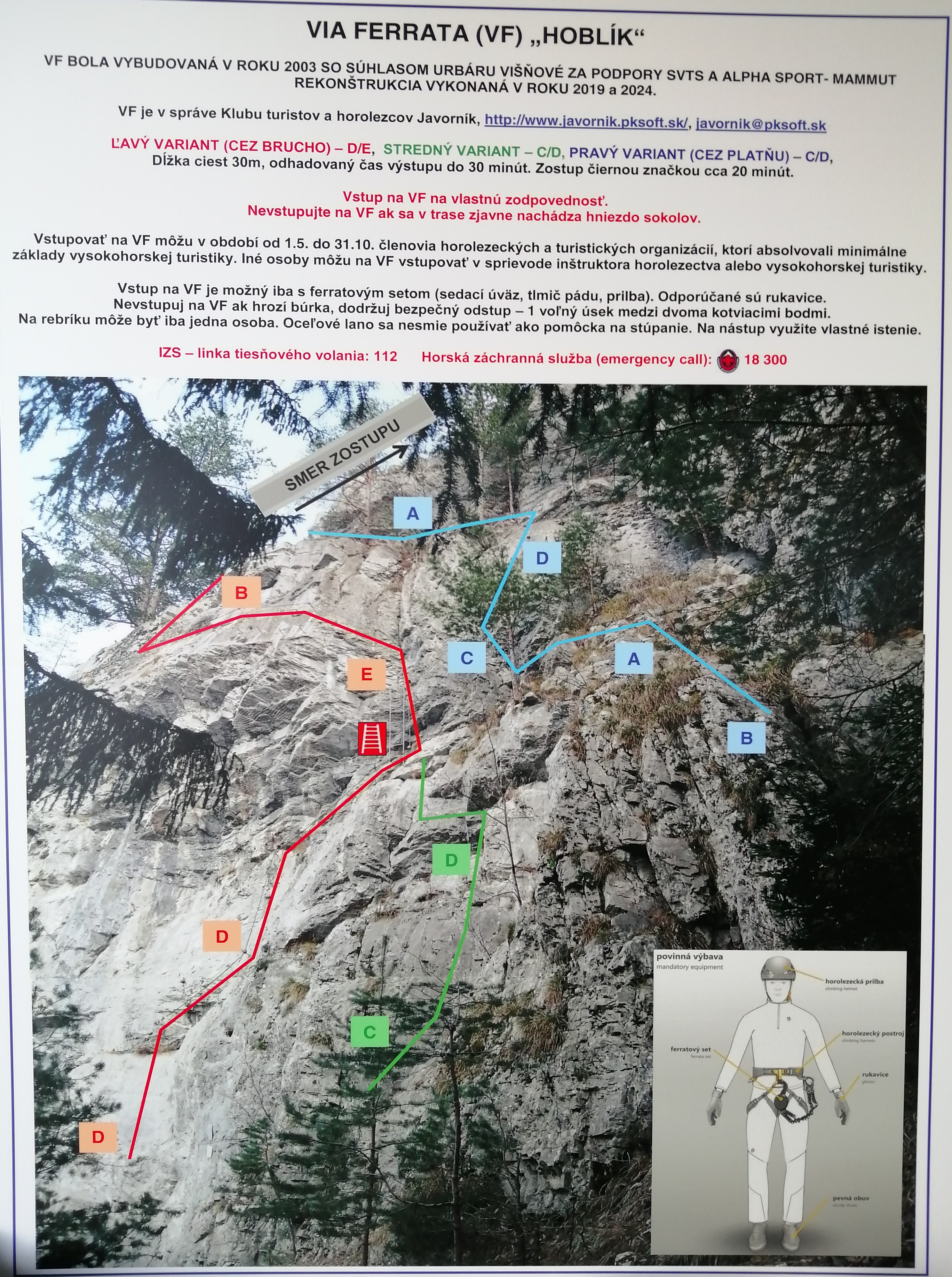 Ferrata in the Višňov Valley (8 km SE from Žilina) is located on the limestone bar of the southwest side of Hoblík peak 934 m.n.m.